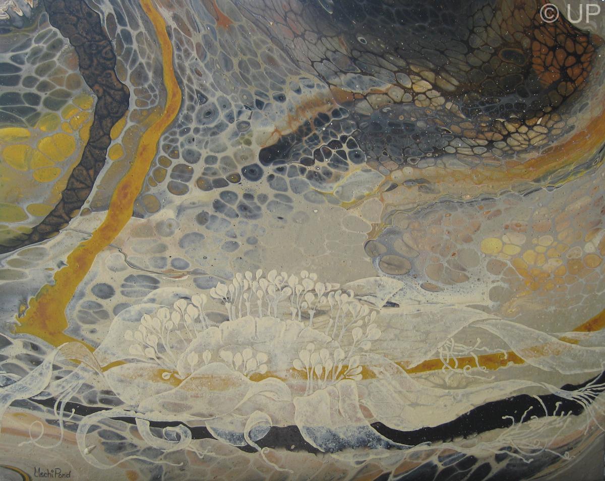 I particularly enjoy painting on wood with the grain showing through the image, portraying the natural world around us. Thinly applied, layer upon layer, I can maintain transparency, whilst pouring acrylics result in an exciting, yet unpredictable result.