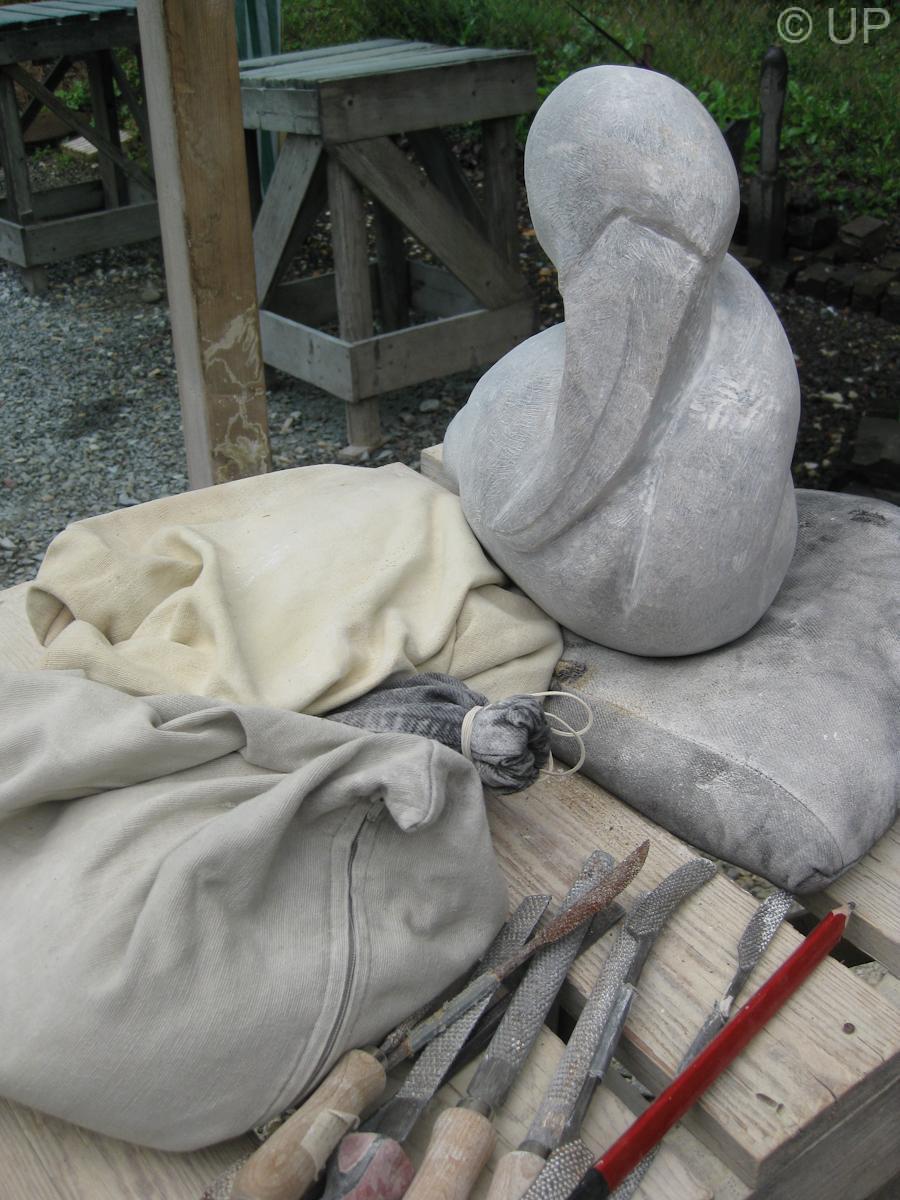 Sculpturing is a meditative process. It encompasses both: chipping away at natural stone or building layer upon layer with clay and cretestone until the desired shape emerges. Thus two mentally demanding processes in different directions.
